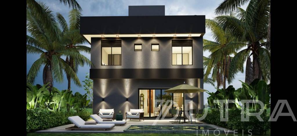 Belíssimo sobrado em Condomínio, totalmente equipado e mobiliado, composto por 4 suítes, banho social, lavabo, cozinha americana com armários, churrasqueira, sala de estar/jantar, living 3 ambientes, piso porcelanato, esquadrias em pvc preto, área de serviço, paisagismo e 2 vagas para carro. Condomínio com alta segurança e infraestrutura completa. Adquira já esse belíssimo imóvel por apenas 1.850 mi.